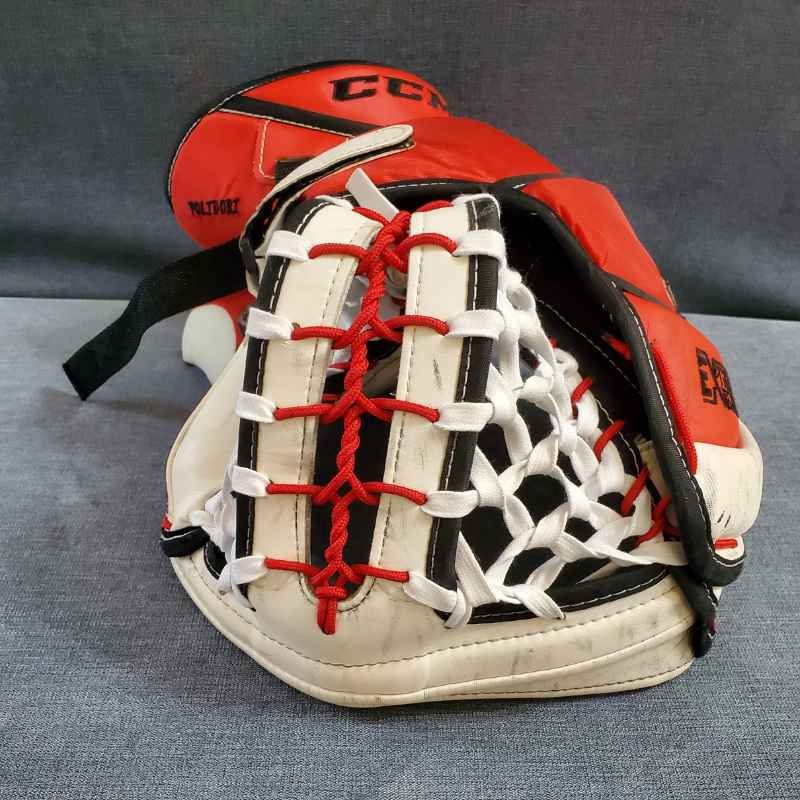 This CCM EFlex III Pro Stock Goalie Glove was completely rebuilt from the base up. Sr. Pro Stock Left Hand.